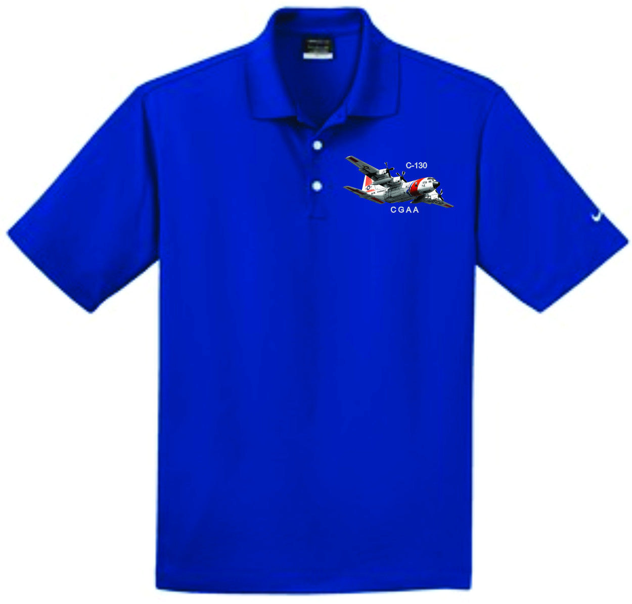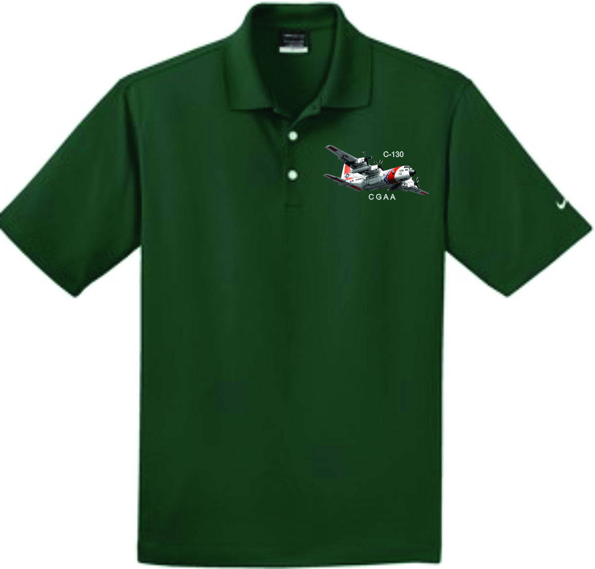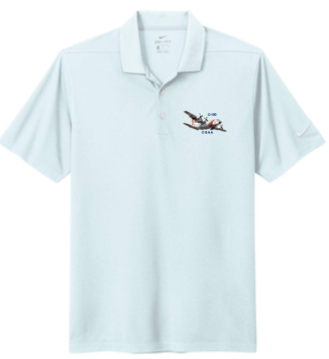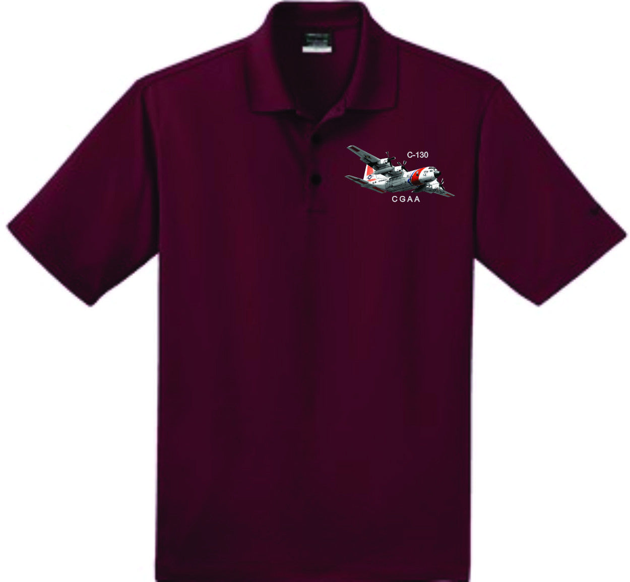 Dri-FIT Nike polo with C-130 embroidery on left chest. This comfortable micro pique polo has an exceptionally soft hand.
