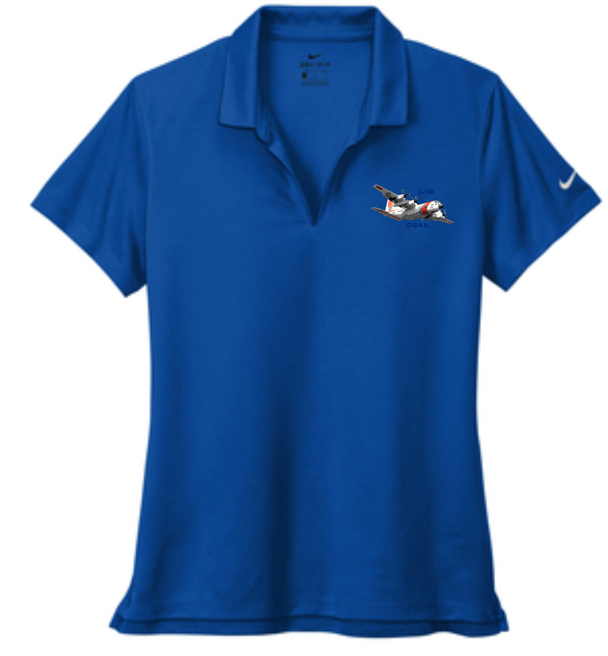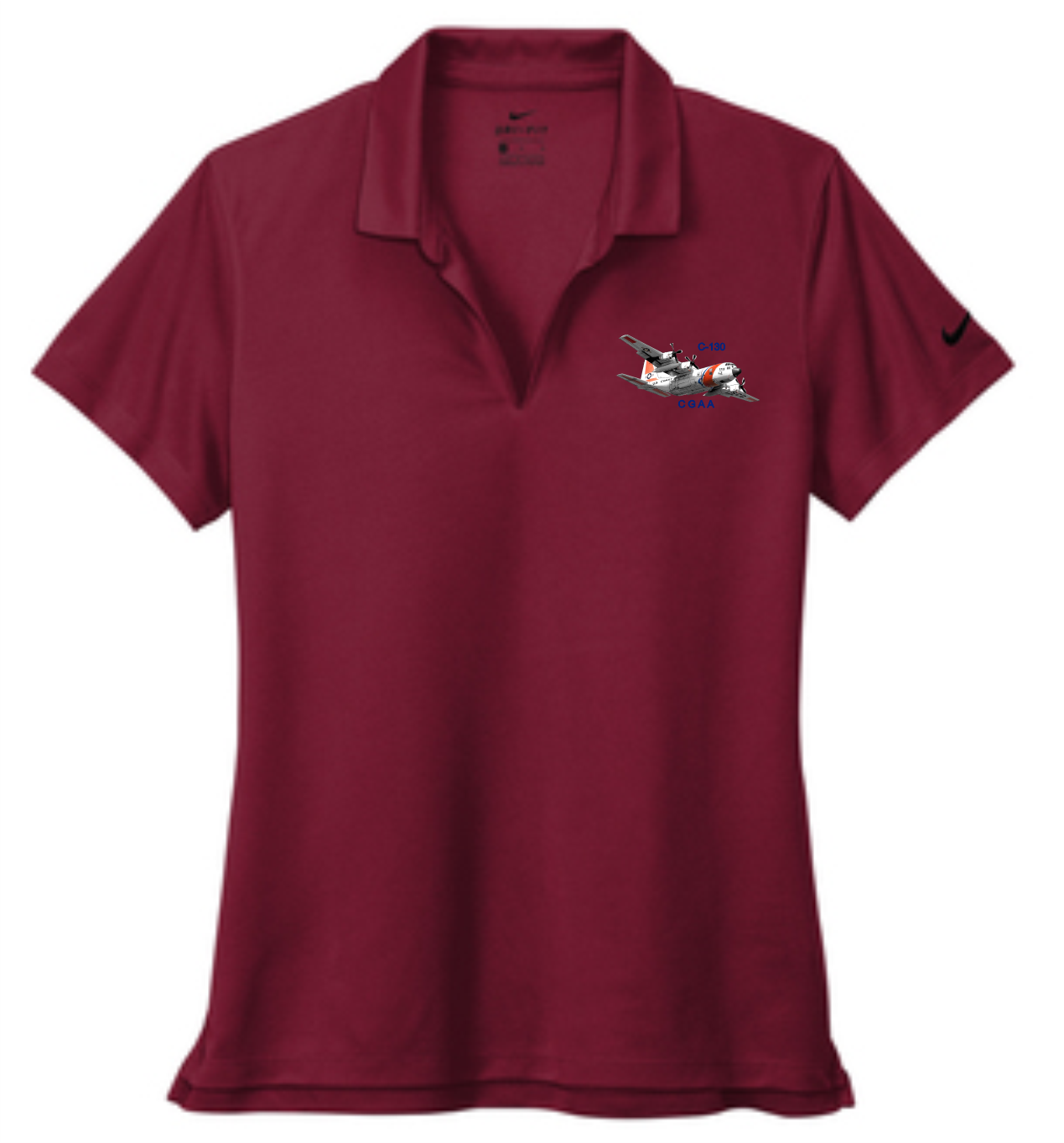 Ladies cut Dri-FIT Nike polo with C-130 embroidery on left chest. This comfortable micro pique polo has an exceptionally soft hand.