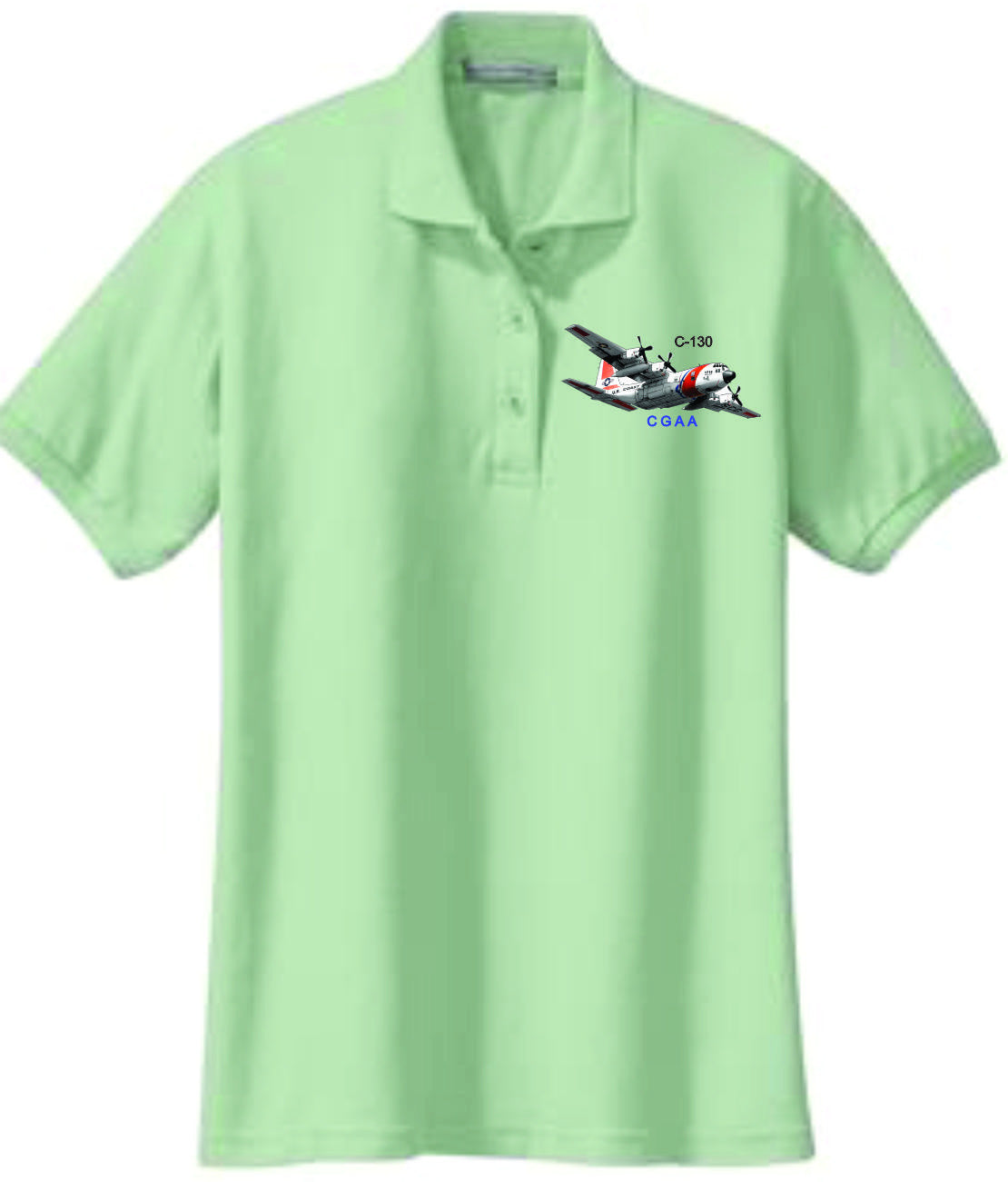 An enduring favorite polo with the C-130 Helicopter embroidery on left chest in a ladies style. With superior wrinkle and shrink resistance, a silky soft hand. 65/35 poly/cotton mix.