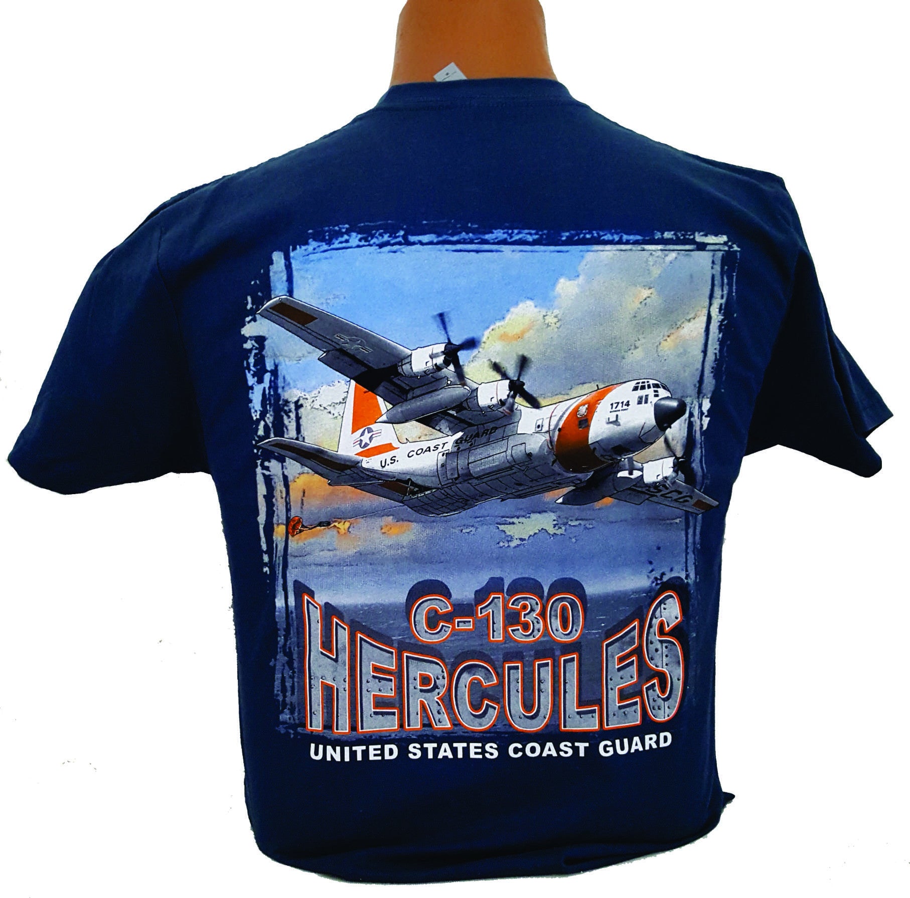 C-130 Hercules going through the paces, ThumbsUp Pterodactyl logo on the front chest of this soft indigo tshirt. This full color image is on a 4.3 ounce fitted crewneck t-shirt. 100% cotton, 32 singles. Soft enough to sleep in.