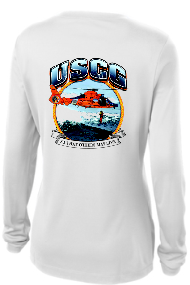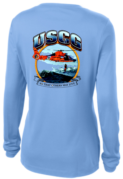 Lightweight, roomy and highly breathable, this moisture wicking long sleeve ladies tshirt will become the staple of your wardrobe. The H65 image "So That Other May Live" is dye sublimated onto the shirt. This provides maximum wicking capabilities with a full color logo.