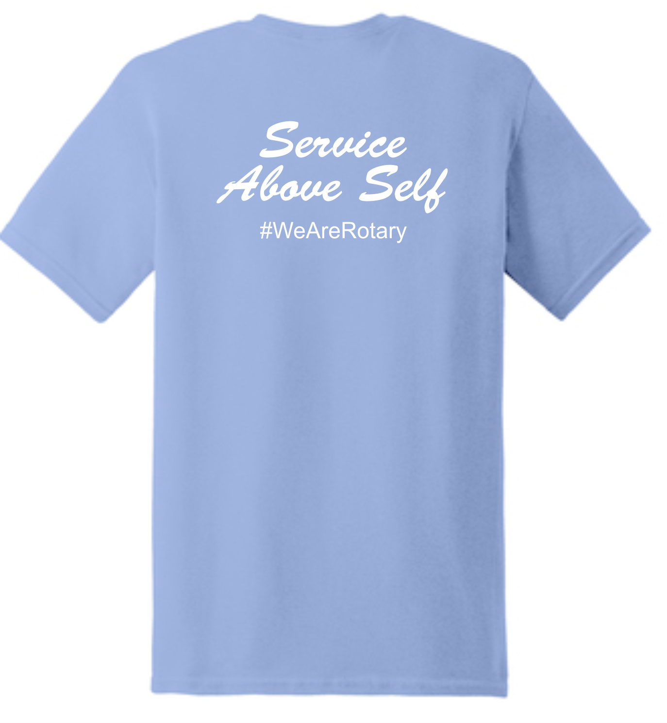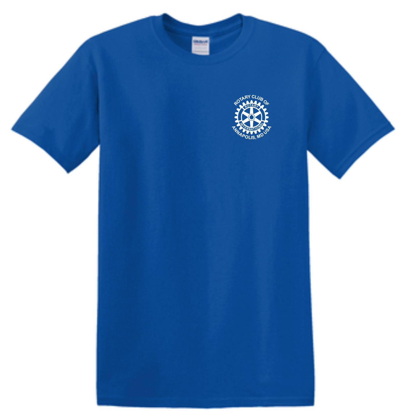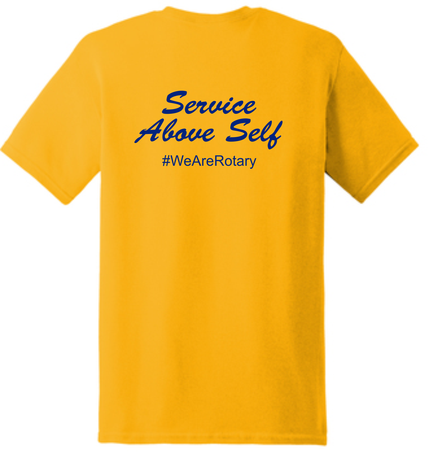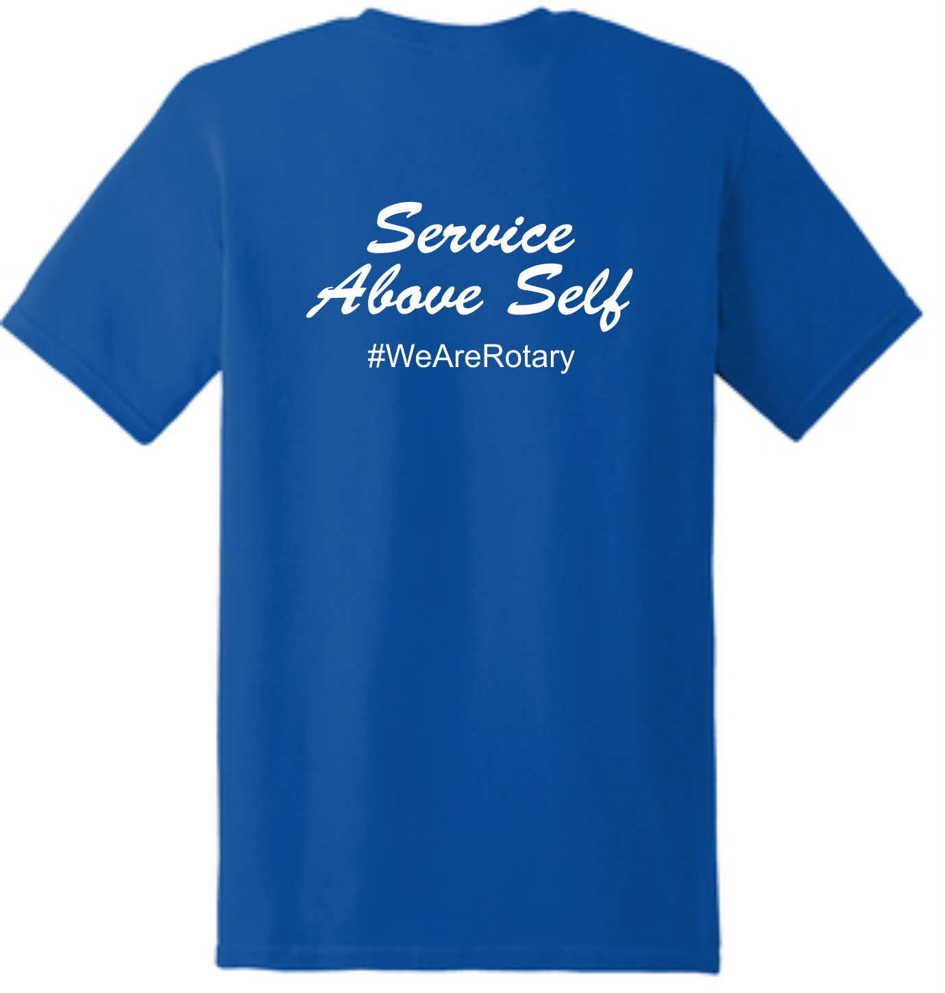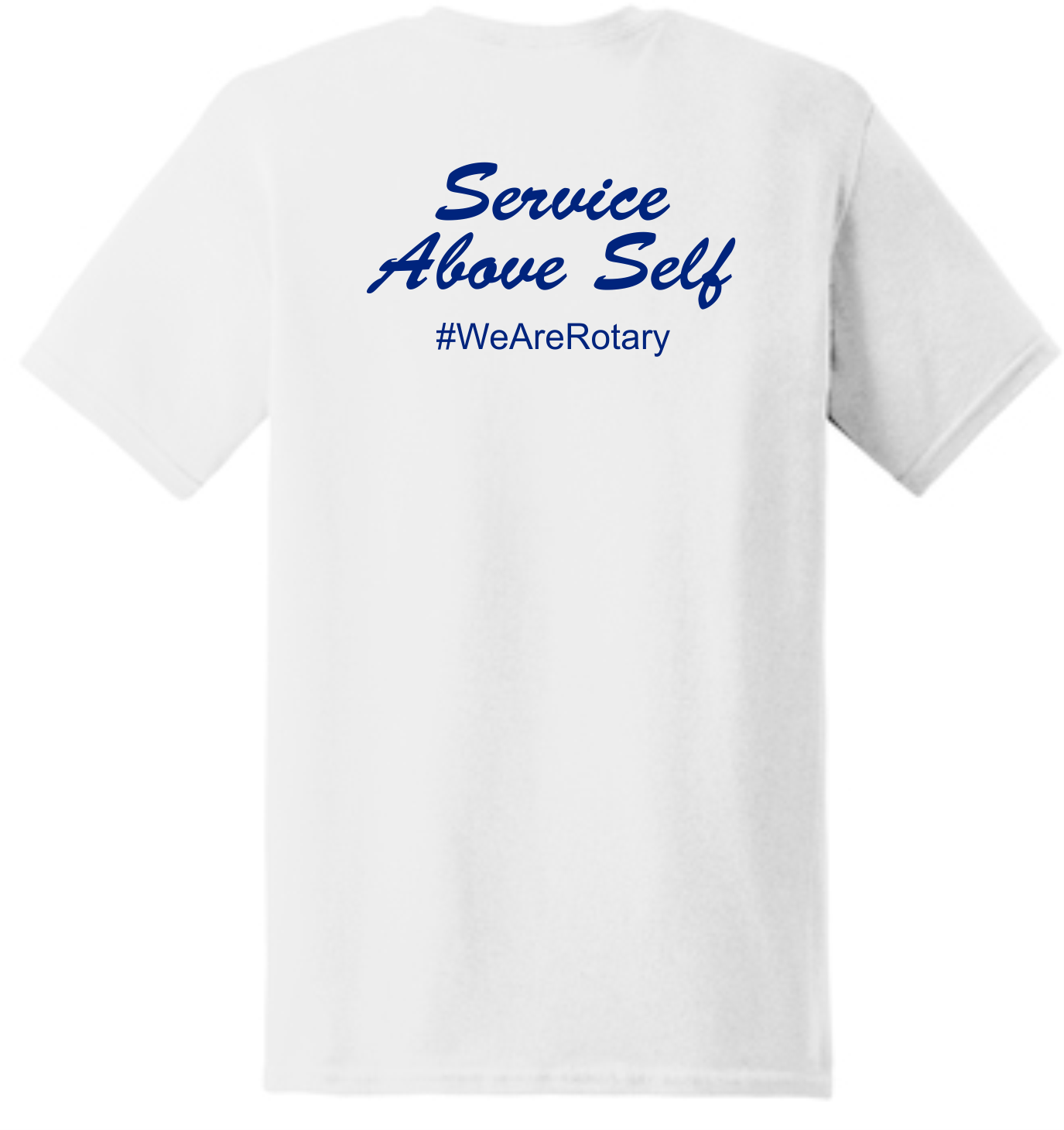 This cotton tshirt is perfect for volunteering around the town. Rotary Club of Annapolis logo screened on left chest with Service Above Self #WeAreRotary image on the back.