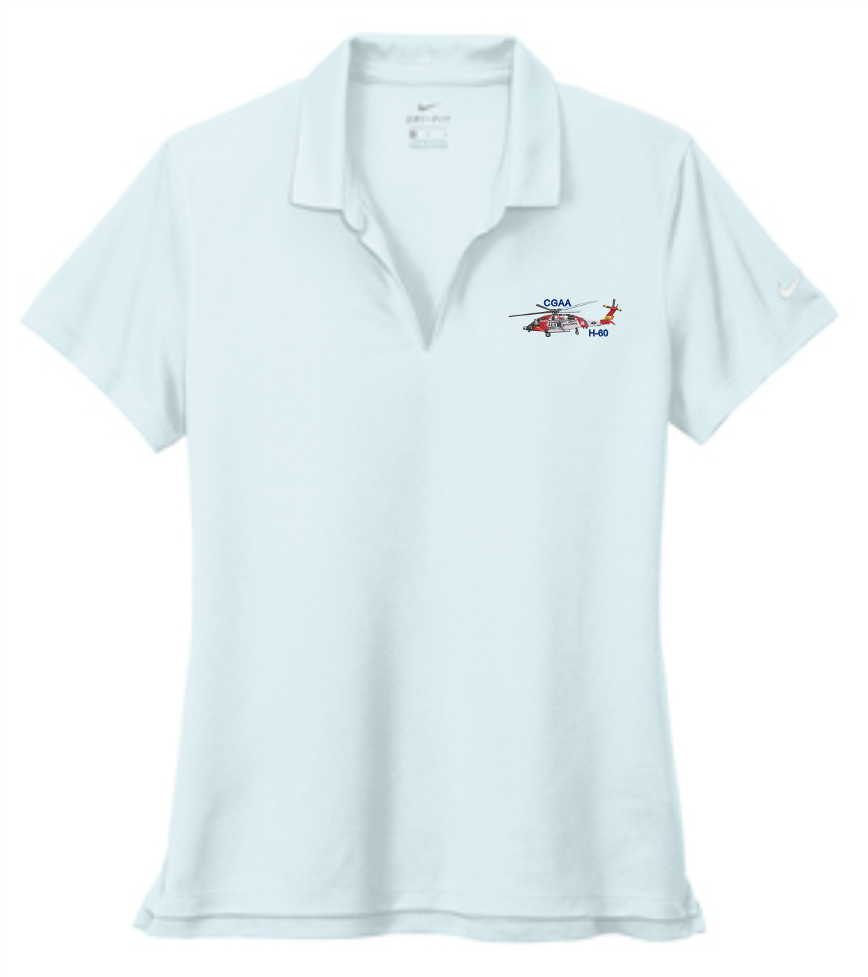 Ladies cut Dri-FIT Nike polo with H-60 Helicopter embroidery on left chest. This comfortable micro pique polo has an exceptionally soft hand.