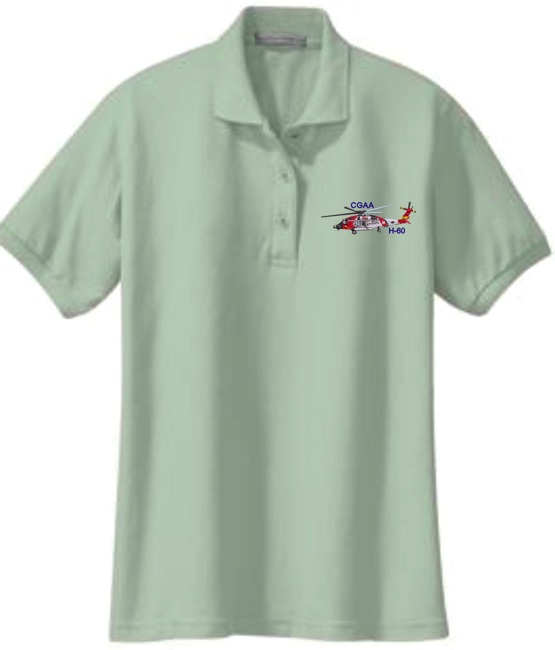 An enduring favorite polo with the HH-60 Helicopter embroidery on left chest in a ladies style. With superior wrinkle and shrink resistance, a silky soft hand. 65/35 poly/cotton mix.