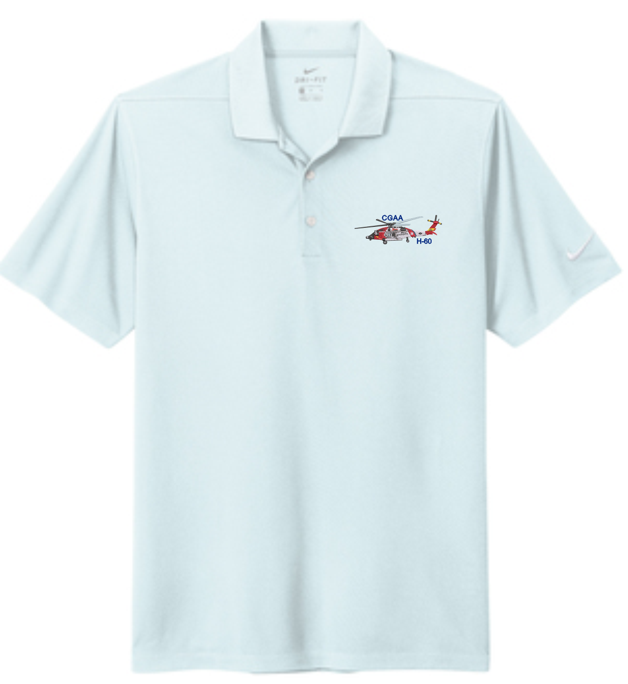Dri-FIT Nike polo with H-60 Helicopter embroidery on left chest. This comfortable micro pique polo has an exceptionally soft hand.