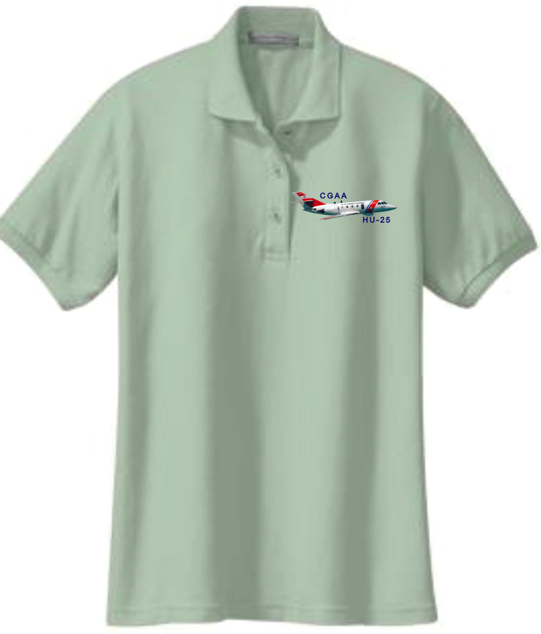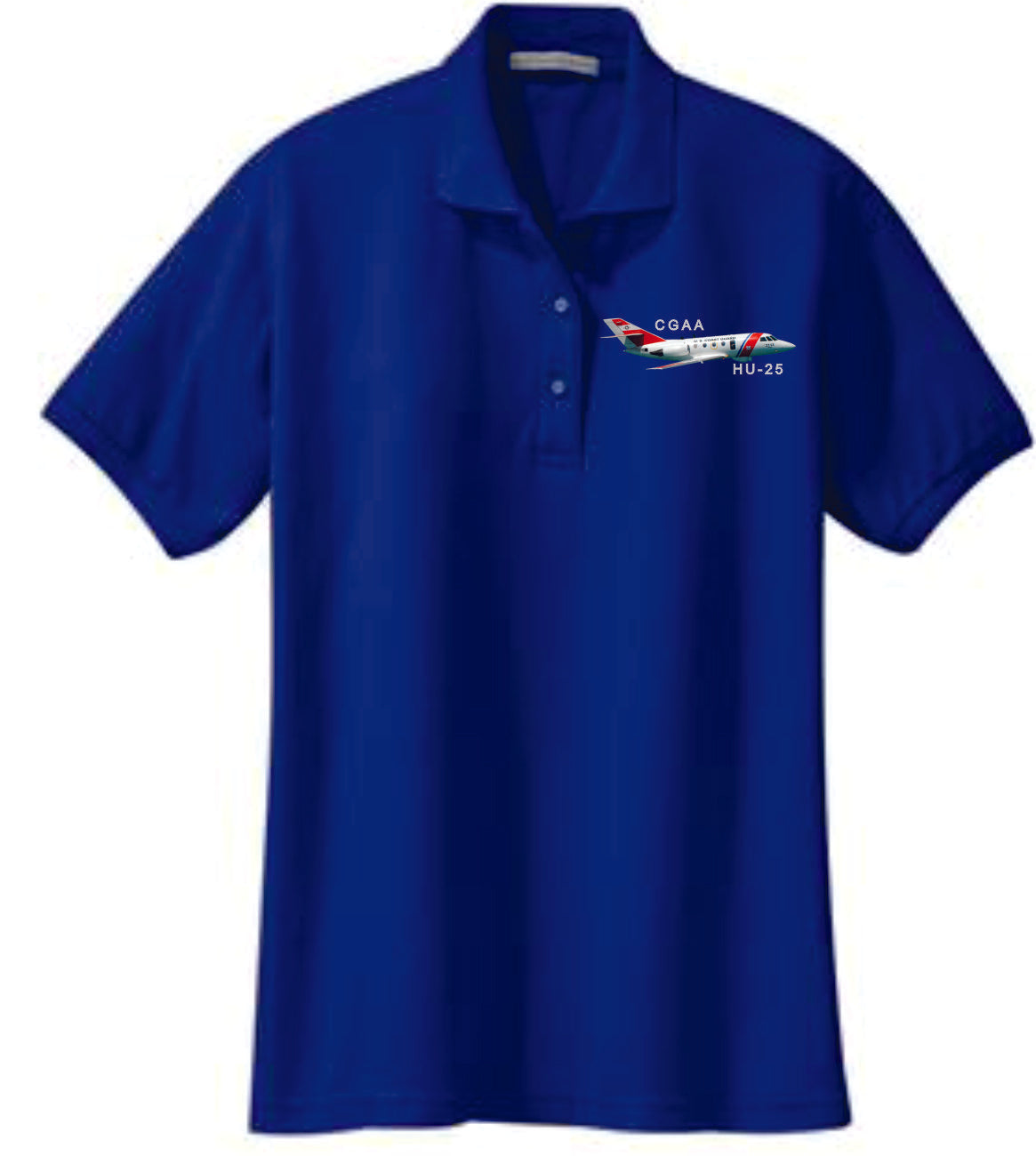 An enduring favorite polo with the HU-25 airplane embroidery on left chest in a ladies style. With superior wrinkle and shrink resistance, a silky soft hand. 65/35 poly/cotton mix.