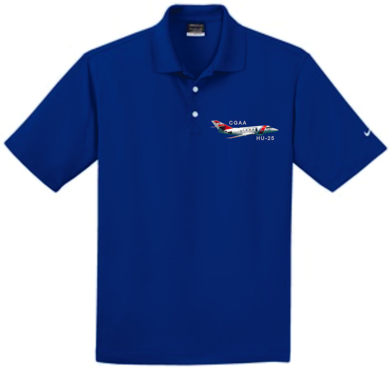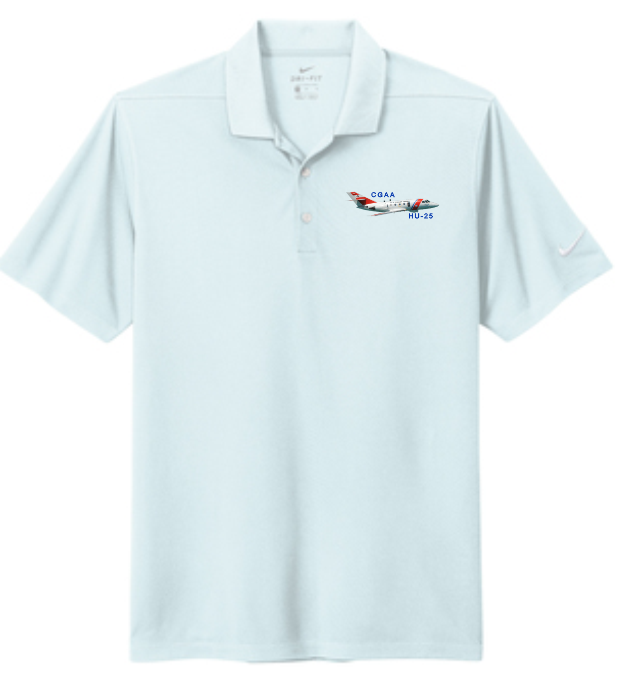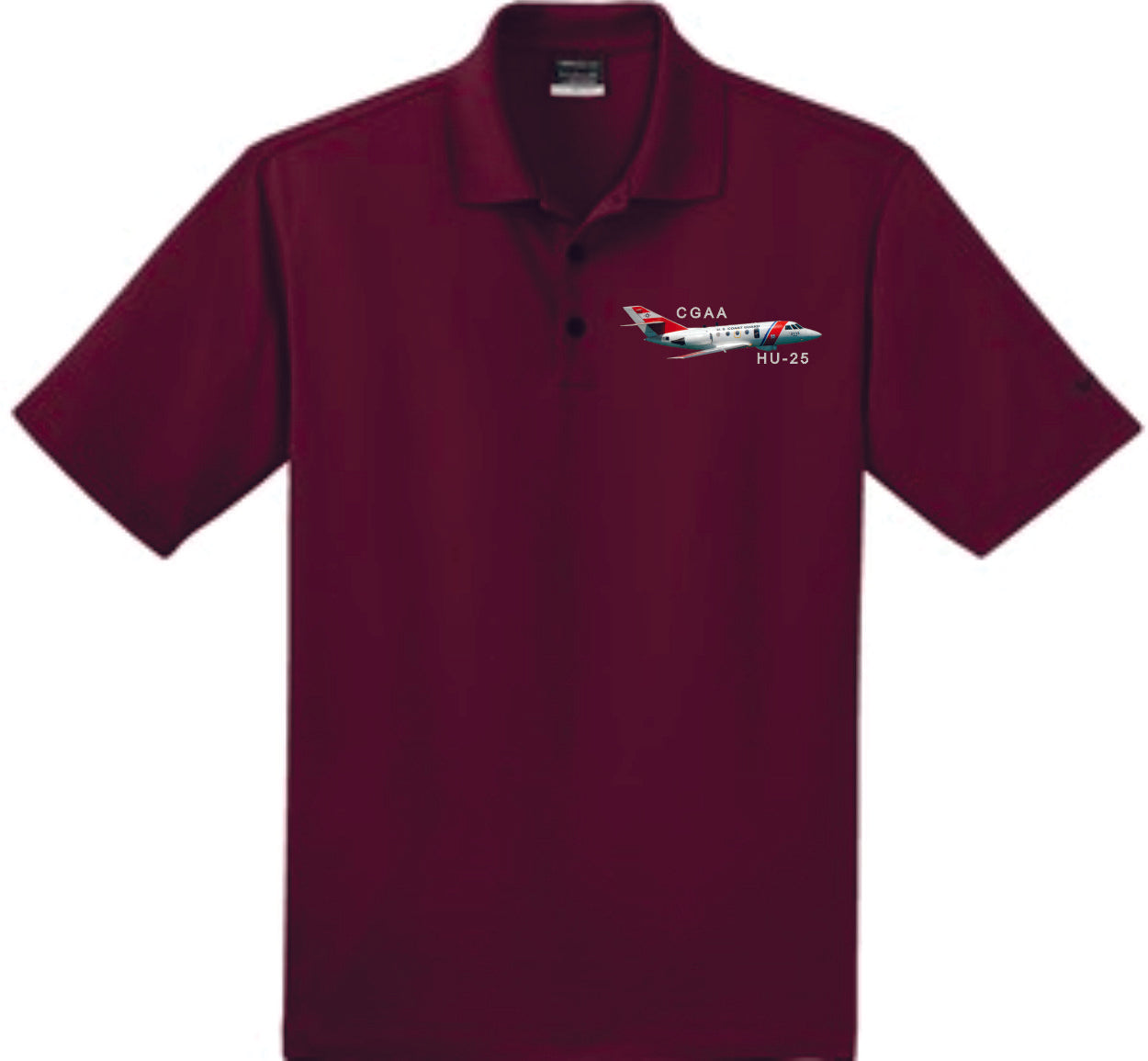 Dri-FIT Nike polo with HU-25 airplane embroidery on left chest. This comfortable micro pique polo has an exceptionally soft hand.