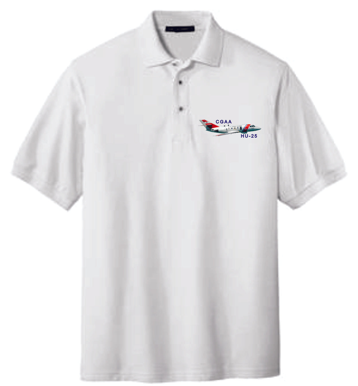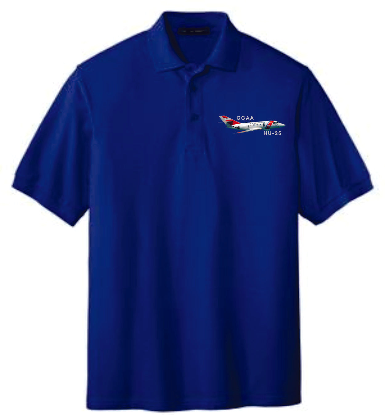An enduring favorite polo with the HU-25 airplane embroidery on left chest. With superior wrinkle and shrink resistance, a silky soft hand. 65/35 poly/cotton mix.