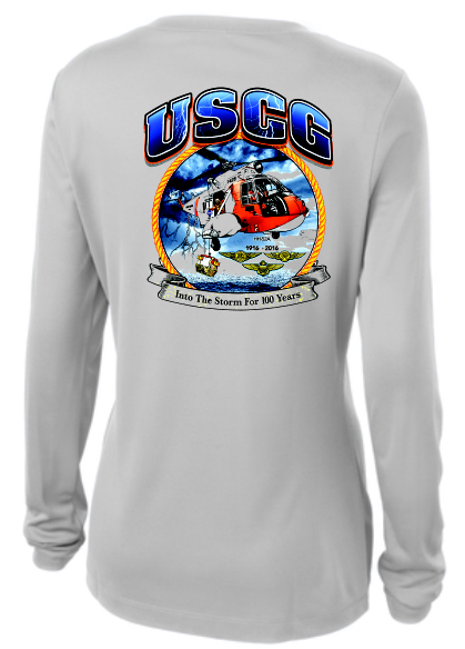 Lightweight, roomy and highly breathable, this moisture wicking long sleeve ladies tshirt will become the staple of your wardrobe. The HH-52A image "Into the Storm for 100 Years" is dye sublimated onto the shirt. This provides maximum wicking capabilities with a full color logo.