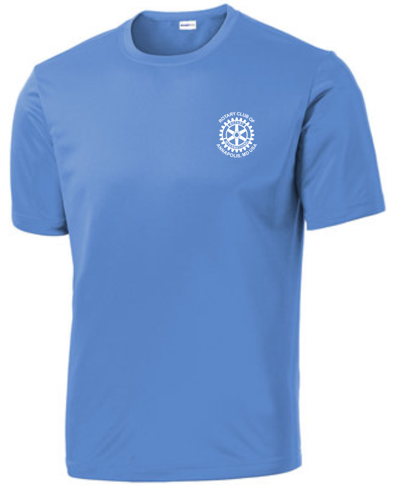 A light weight and roomy technical tshirt is perfect for all weather conditions. The wicking properties make this shirt comfortable in the warm weather and in the cooler weather it is a perfect layering piece for added warmth. The Rotary Club of Annapolis, MD USA logo is printed on the front with "Service Above Self" #WeAreRotary image on the back.