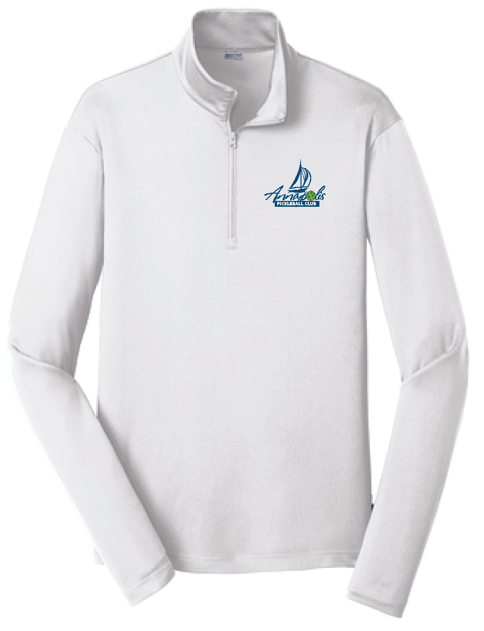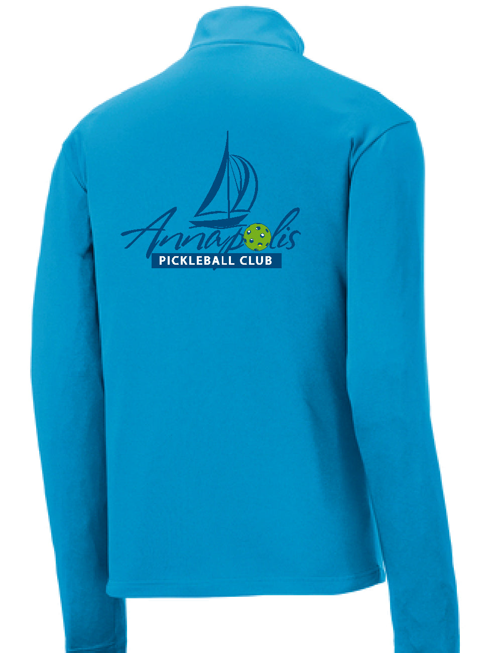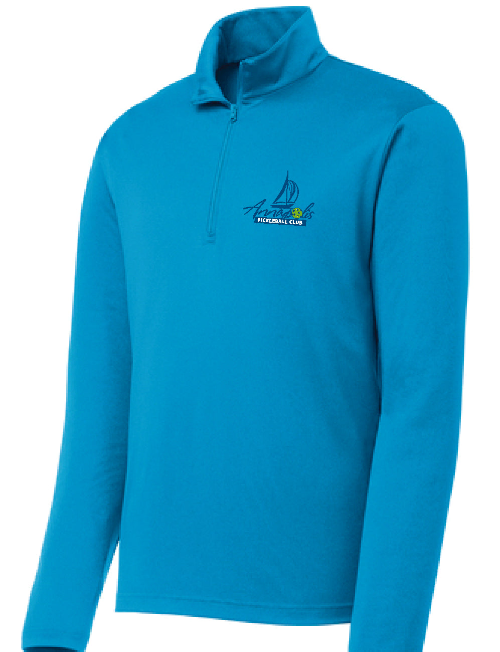 This lightweight long sleeve wicking tshirt sports a 1/4 zip zipper on the front. The Annapolis Pickleball logo is on the front and back.