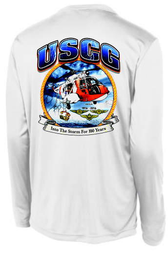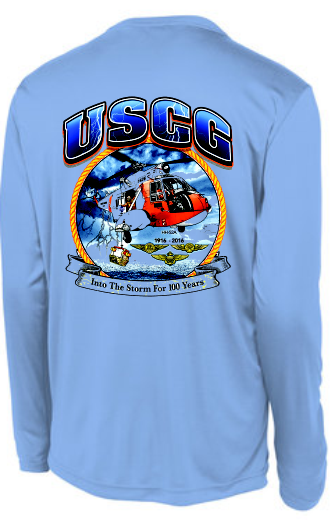 Lightweight, roomy and highly breathable, this moisture wicking long sleeve tshirt will become the staple of your wardrobe. The HH-52A image "Into the Storm for 100 Years" is dye sublimated onto the shirt. This provides maximum wicking capabilities with a full color logo.