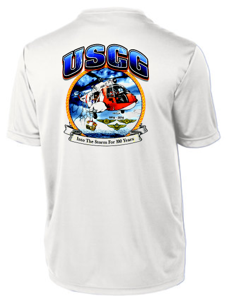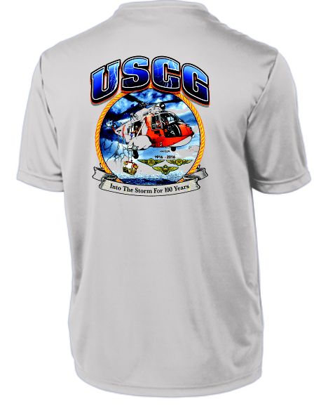 Lightweight, roomy and highly breathable, this moisture wicking short sleeve tshirt will become the staple of your wardrobe. The HH52-A image "Into the Storm for 100 Years" is dye sublimated onto the shirt. This provides maximum wicking capabilities with a full color logo.