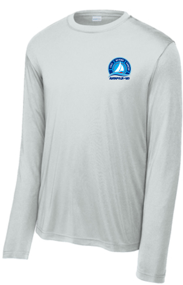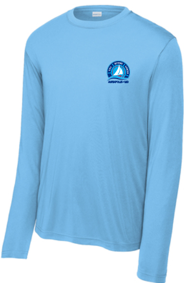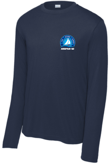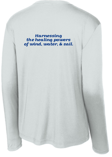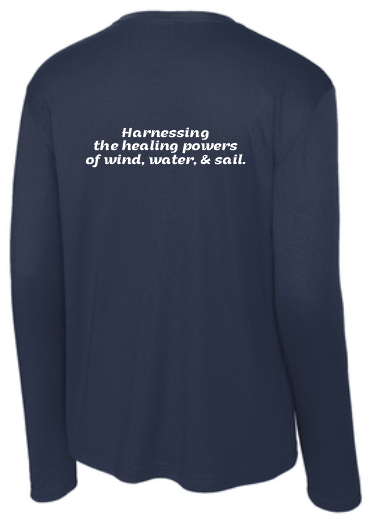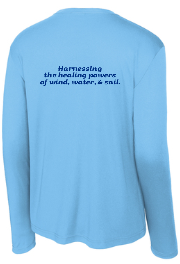 A Lightweight and highly breathable moisture-wicking longsleeve tshirt with the Sail Beyond Cancer / Annapolis logo on the front and Embracing the Healing power slogan on the back. This is a unisex style for guys and gals.